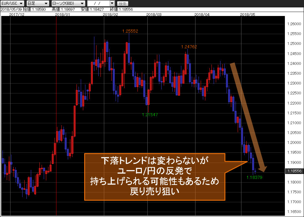 <ユーロ/米ドル 日足チャート>