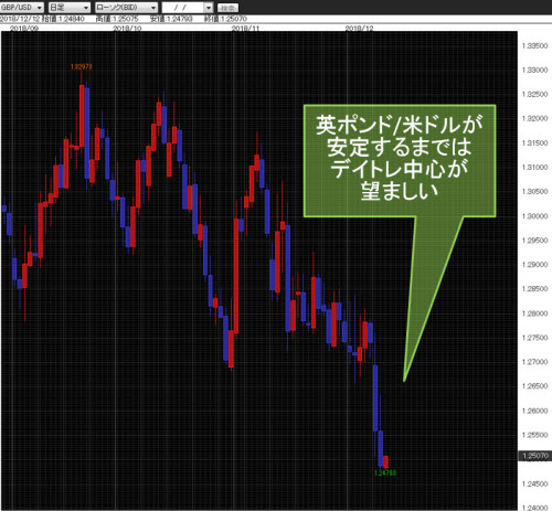 こうした環境下、英ポンド/米ドルは一時1.2500ドルを割り込む展開となったわけだが、ほとんどのメディアが伝えている内容は、合意なき離脱に向けて進んでいるといったもの。こうした報道を受けても英ポンド/米ドルが走らないのは、ポジティブなヘッドライン一本でポンドが急騰するリスクもはらんでいるためだ。英ポンド/米ドルが安定するまでは、スウィングポジションは限定的で、FXはデイトレ中心が望ましいだろう。